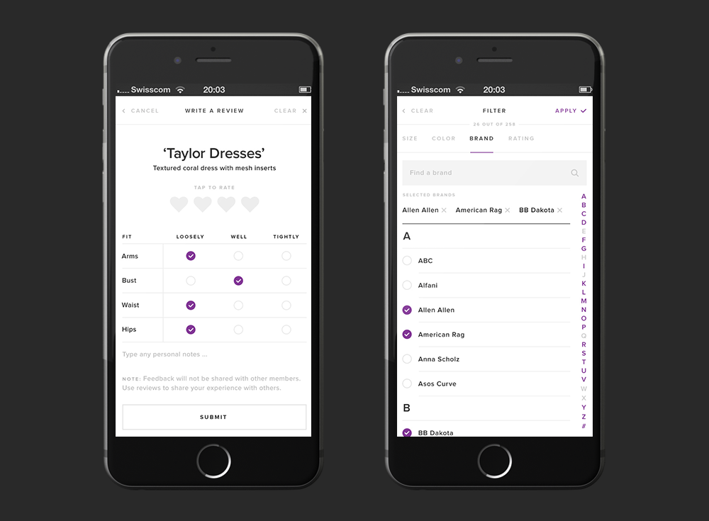 - Upon completion of the subscription flow, lead the users directly into a rich experience for clothing selection. Get them started on their first rental immediately.