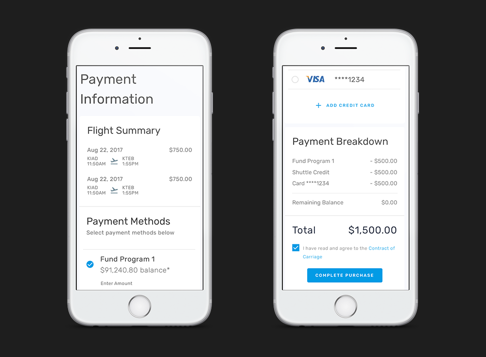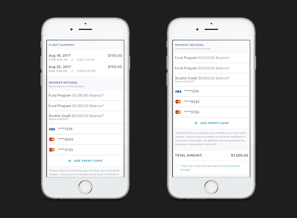Wheels Up is a private aviation company whose members have access to a fleet of private planes and can book jets at a flat, all-inclusive hourly rate through a mobile app. The search, booking and checkout functions allow for multiple destinations and passengers, as well as various combinations of these.